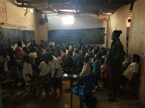 拥有20年教学经验的Celestin已经当了六年校长。他介绍说,这里的学生年龄介乎5岁至14岁,每人每个月的学费是六美元(约47港元)。记者到访的这天,学生们的最后一节课是数学课,问道“父母是手採矿工的同学请举手”,一双双小手纷纷举起。