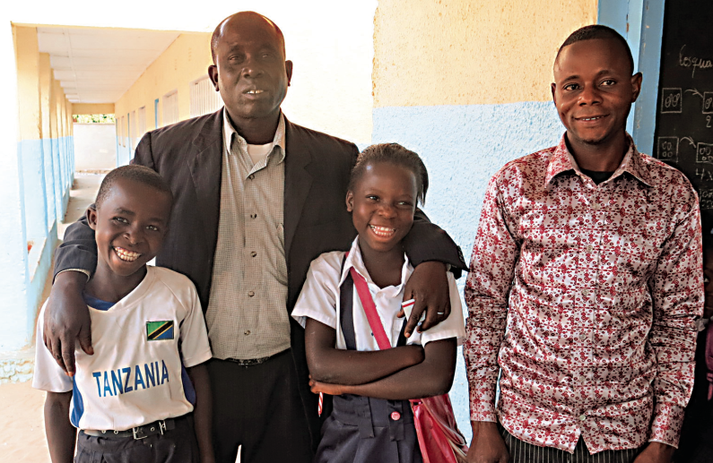 卡苏鲁矿村一学校校长Celestin(左二)与学生Landrian(左一)和Edo。
