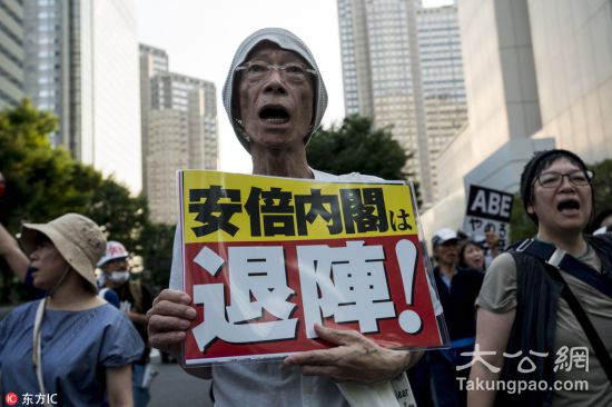 当地时间2017年7月9日,日本东京,民众举行游行示威,要求查明“加计学园”丑闻真相和首相安倍辞职。