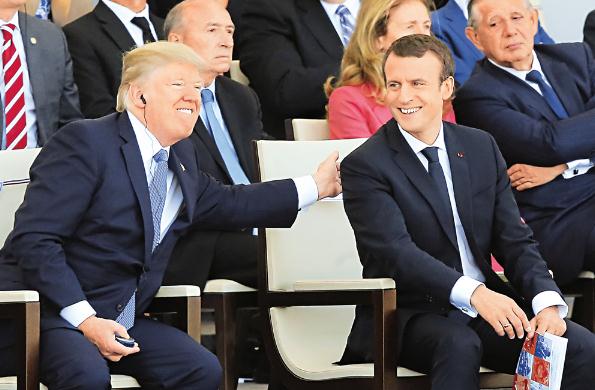 大公网7月15日讯 综合美联社、法新社、英国广播公司报道:应法国总统马克龙之邀,美国总统特朗普13日起旋风访问巴黎36小时,并出席法国国庆日巴士底日庆典。美法领导人这次展现了相当融洽的关系,求同存异,双方承认在气候问题上存在“分歧”,但避免将之视为双边关系的“障碍”。特朗普更暗示,可能改变对《巴黎协定》的立场。