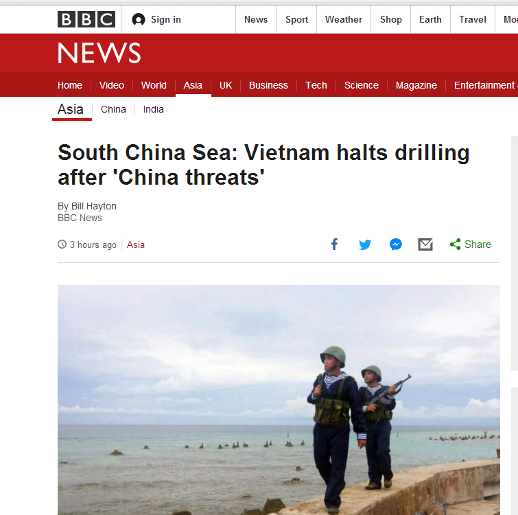 大公网7月24日讯 英国广播公司(BBC)24日称,由于受到来自中国的压力,越南近日终止了在南海有争议海域的一次天然气钻探。