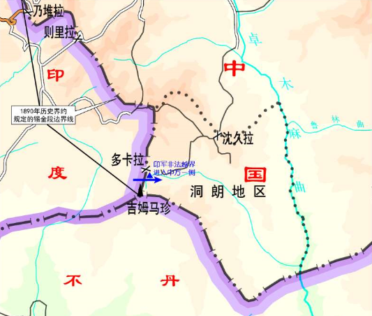 印度边防人员在中印边界锡金段越过两国承认的边界线进入中国境内。(图片来源:外交部网站)