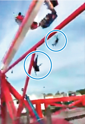 目击者拍摄的视频显示,运行中的“火球”像钟摆一样摆荡,并在空中旋转。突然,“火球”貌似撞到某种东西,部分座椅应声掉落,两名乘客被飞抛到高空,再重摔地面。现场同时传出尖叫声。