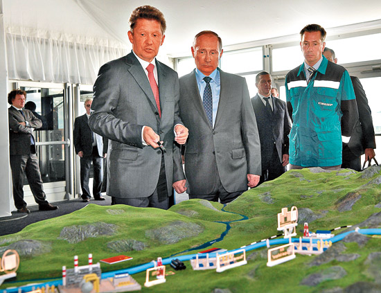 图:3日,俄罗斯总统普京(中)参观中俄合作阿穆尔天然气加工厂/路透社