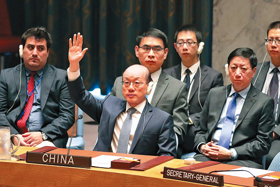 当地时间8月5日,联合国安理会在纽约联合国总部通过针对朝鲜实施新制裁的决议。中国常驻联合国代表刘结一在表决该项决议时举手表示赞成 美联社