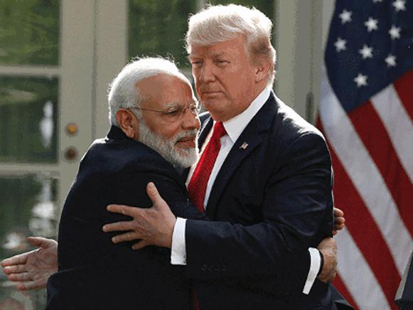 图:印度总理莫迪(左)6月26日在白宫与美国总统特朗普拥抱/美联社