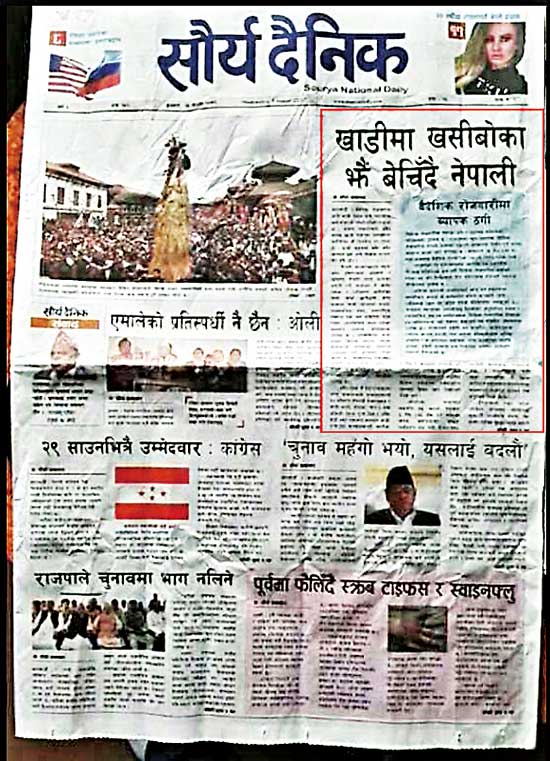 据环球网报道:中印军队在洞朗地区对峙以来尼泊尔官方首次对此发表评论,尼泊尔副总理兼外长马哈拉7日表示,尼泊尔不会受中印两国的影响,也不会卷入。然而,近日尼泊尔有两大机构陆续通过当地报纸及网络媒体发声,明确表态支持中国的立场。