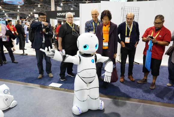 图:特朗普将以中国强制美企进行技术转让为由展开贸易调查。图为智能机器人等中国创新产品亮相拉斯维加斯消费电子展/资料图片