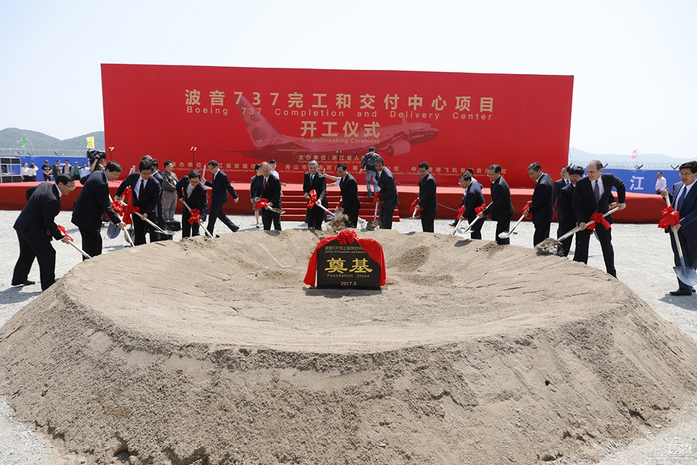 图:五月十一日,中美战略重大项目“波音七三七完工和交付中心”在舟山朱家尖航空产业园开工/网络图片