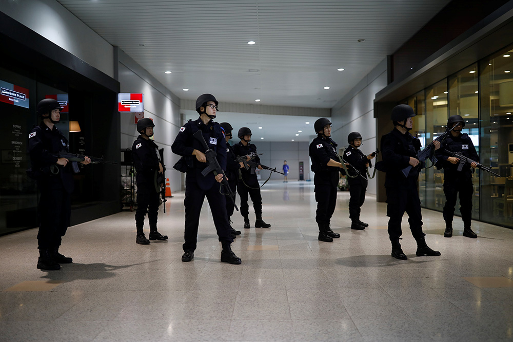 图:韩国军警21日在高阳市举行反恐演习 路透社