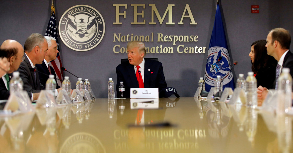 图:本月4日,美国总统特朗普在联邦紧急事务管理署听简报\路透社