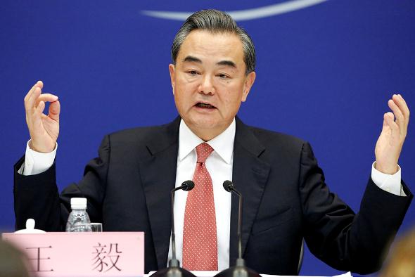图:30日,中国外交部长王毅在北京介绍金砖厦门峰会相关情况中新社