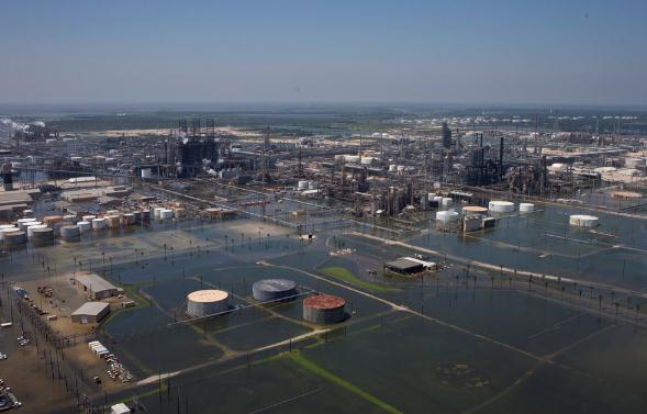 图:得州阿瑟港一处工厂被淹/路透社