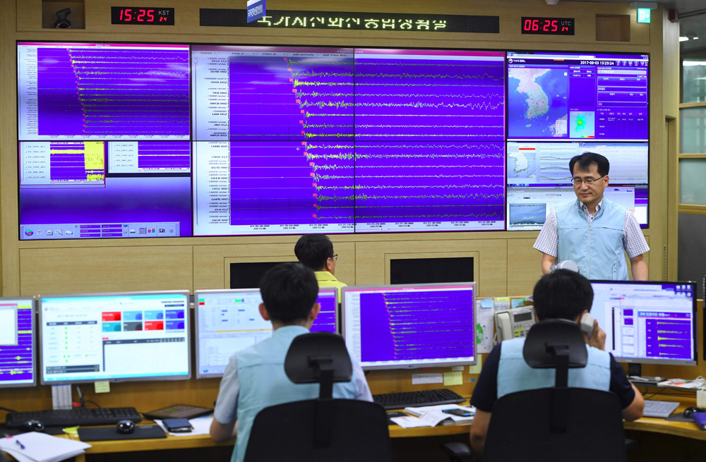 图:韩国气象厅3日监测朝鲜核试引发的地震情况\法新社