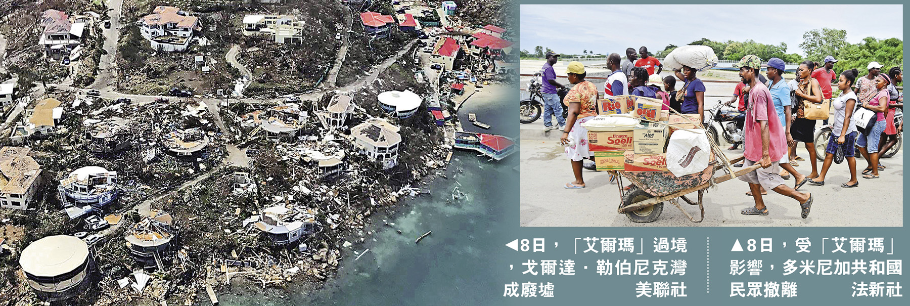 大公网讯 综合法新社及新华社报道:被誉为史上最强飓风“艾尔玛”吹袭加勒比海沿岸的波多黎各、多米尼加及古巴东部后,减弱为四级飓风,直逼美国佛罗里达州,预料当地时间10日早上(香港时间10日晚)登陆,登陆前将再度增强为五级飓风,成为二十多年来吹袭佛州最强劲的飓风,全州逾五百万人面临疏散。
