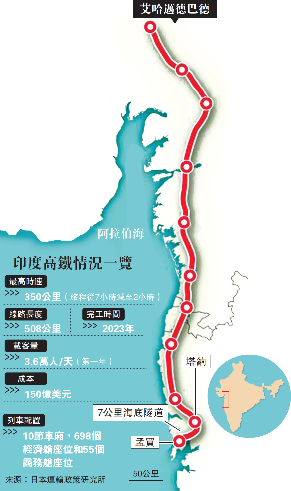 日本为印度修建孟买─艾哈迈德巴德高铁提供超低息贷款、新干线技术以及人才培训