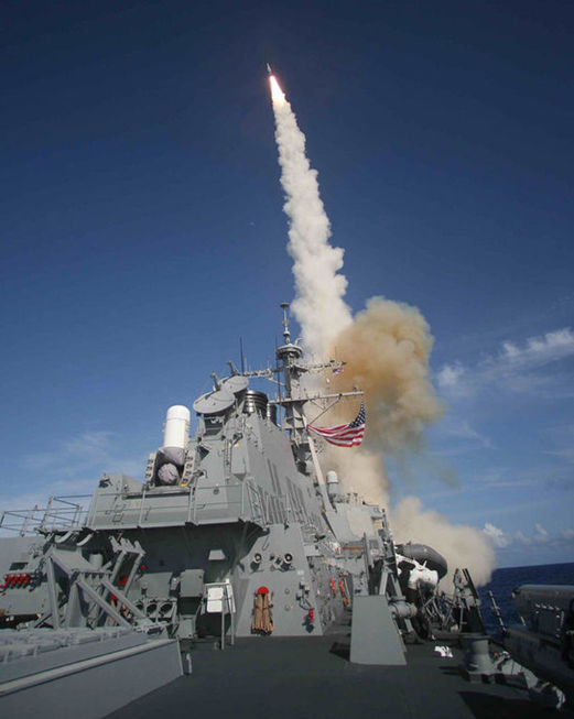图:美国神盾驱逐舰“迪凯特”号发射SM-3导弹/网上图片