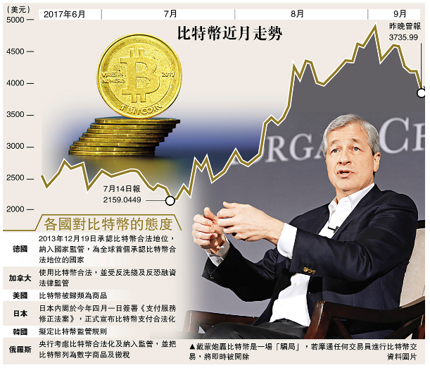 图:戴蒙炮轰比特币是一场“骗局”,若摩通任何交易员进行比特币交易,将即时被开除/资料图片