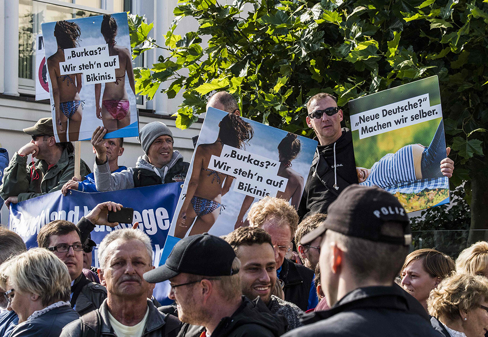 图:2016年3月,民众因假新闻示威反对难民入境 法新社