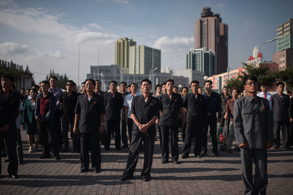 图:朝鲜民众22日在平壤观看金正恩发表演说/法新社