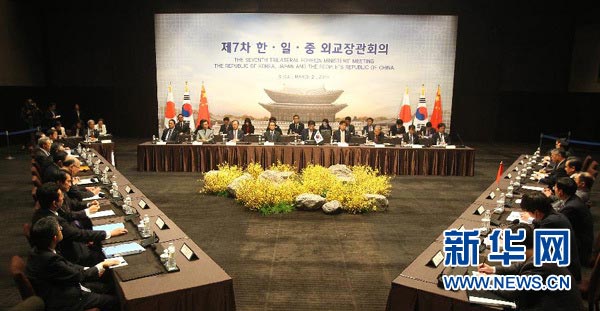 2015年3月21日,在韩国首尔拍摄的第七次中日韩外长会现场。 图:新华网