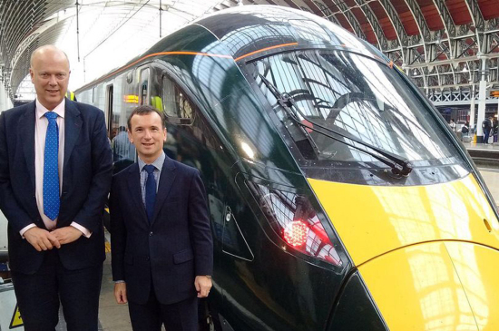 图:英国运输大臣纪嘉林(左)出席了16日的新列车首次运行/网上图片