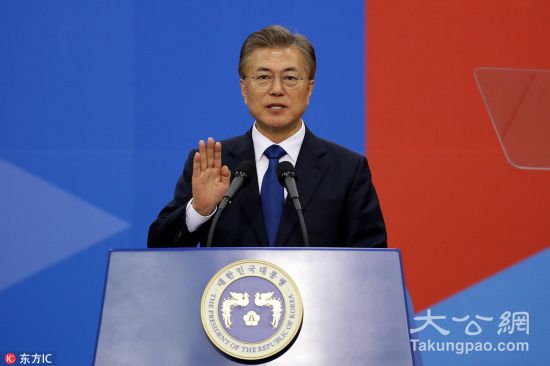 当地时间2017年5月10日,韩国首尔汝矣岛国会中央大厅,文在寅正式宣誓就任韩国第19届总统。图片来源:东方IC