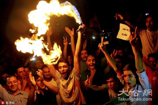 资料图:当地时间2015年7月14日,伊朗德黑兰,伊朗民众在街头欢呼雀跃,庆祝伊核问题谈判达成全面协议。图片来源:东方IC