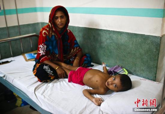 9月27日,一位儿童躺在达卡一家医院的病床上。孟加拉国目前面临公共医疗卫生方面的挑战,包括有限的、不公平的医疗服务使用权,以及缺乏足够的资源来满足人口的需求。 中新社记者 刘关关 摄