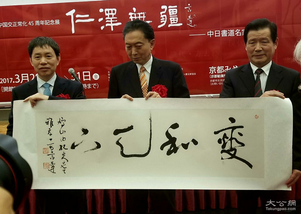 资料图:日本前首相鸠山由纪夫(中) 大公报记者杨明奇摄