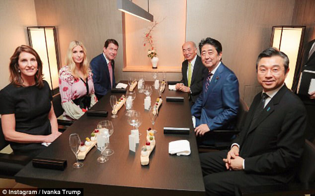 图:伊万卡(左二)3日与安倍(右二)共进晚餐\《每日邮报》