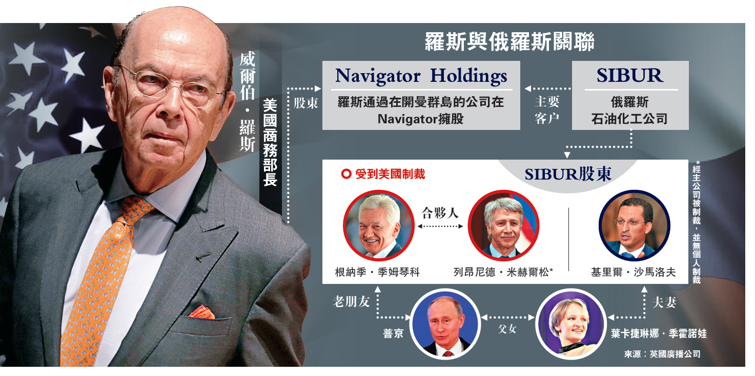 商务部发言人表示,罗斯从没与普京女婿沙马洛夫见面,他一贯支持特朗普政府制裁俄罗斯的决定,而且他在政府任何越洋船务事项中均会避席,“符合最高道德标准”。