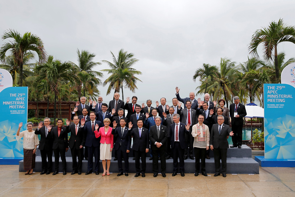 图:8日,APEC部长级会议后,各与会代表合影\路透社