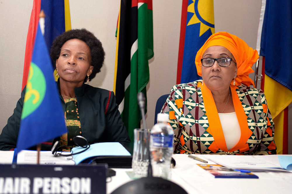 图:南非外长恩科阿纳—马沙巴内(左)与南部非洲发展共同体执行秘书塔克斯16日出席会议讨论津国局势/法新社