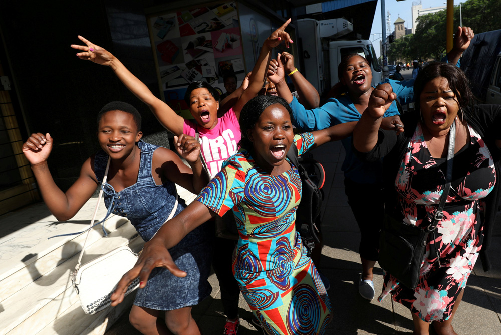 图:津巴布韦民众在穆加贝辞职后上街庆祝 路透社