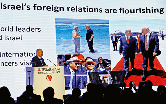 以色列总理内塔尼亚胡6日在一场有关以色列外交的会议上展示美国的支持 美联社