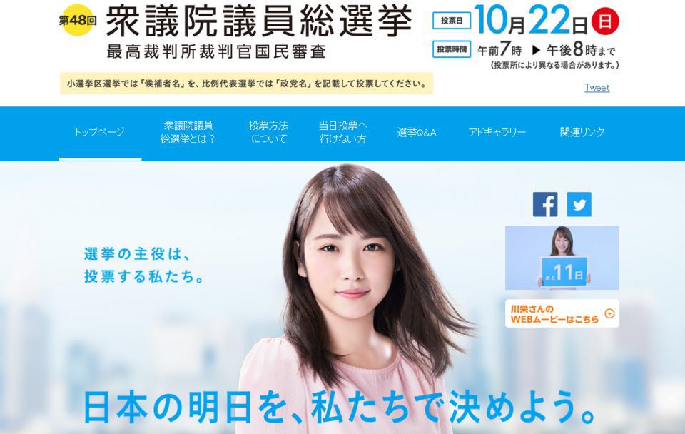 川荣李奈为日本“第48届众议院议员总选举”代言 网站截图
