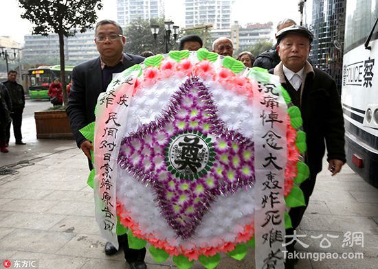 资料图:2015年12月13日,重庆大轰炸民间对日索赔团在重庆大轰炸惨案遗址祭奠南京大屠杀及重庆大轰炸遇难同胞。当天,是第二个南京大屠杀死难者国家公祭日。 /来源:东方ic
