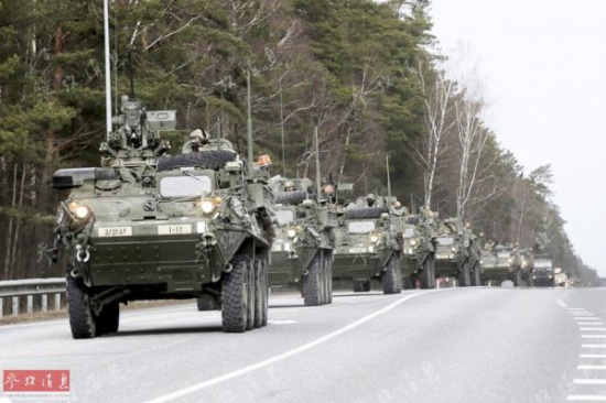 资料图片:穿行欧陆的美军“斯特赖克”装甲车队。