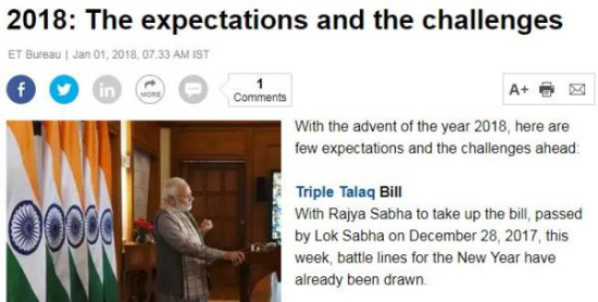 例如1月1日,《印度经济时报》刊发的一篇“2018年,印度的期待和挑战”报道中,不止一次将中国放在印度地缘政治的对立面。
