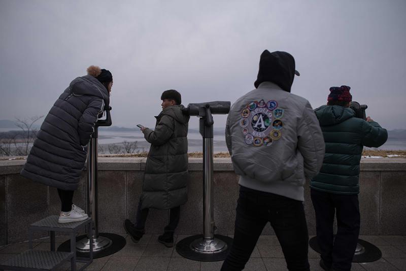 图:韩国民众在边境城市坡州望向对面的朝鲜\法新社