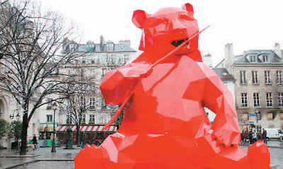 成都国际金融中心与巴黎圣日尔曼-代普雷委员会近日共同启动名为“熊猫行动”的文化交流活动。图为法国当代艺术家里夏尔·奥尔林斯基创作的红色熊猫雕塑。新华社记者 张 曼摄