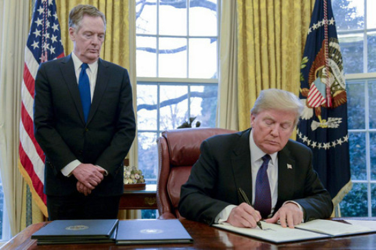 资料图片:美国总统特朗普23日签署法案,向进口太阳能板和洗衣机加征关税。(美国《华尔街日报》网站)