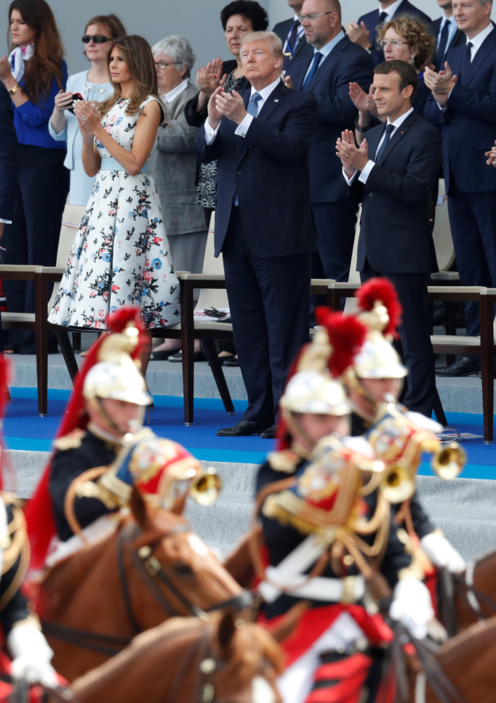 图:特朗普(前中)去年7月在法国出席阅兵式\路透社
