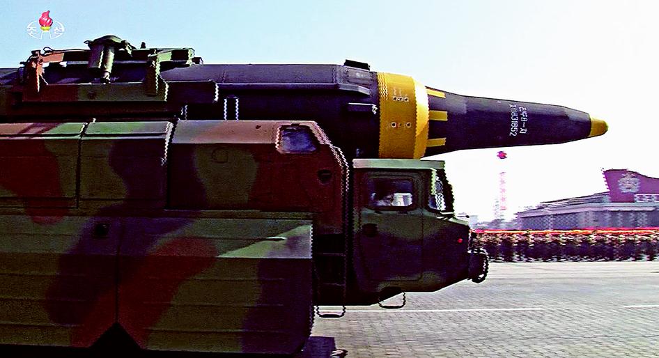 朝鲜在8日的阅兵式上展示导弹 法新社