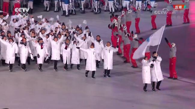 平昌冬奥会开幕式的主题为“跃动的和平”,韩朝代表团共举半岛旗共同入场,这是韩朝代表团11年来首次共同举旗入场。