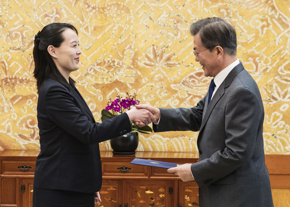 由于金与正手持一个蓝色文件夹进入会议室,惹来外界猜测当中是否有金正恩的书信。青瓦台事后证实,金与正确实转交了金正恩的亲笔信,并口头转达了金正恩口信,邀请文在寅访问朝鲜。