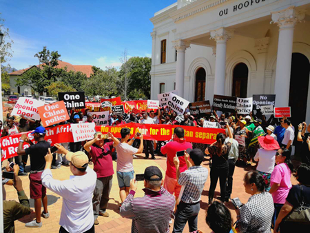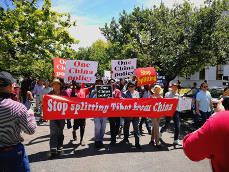 据了解,组织参加今天抗议活动的是南非执政党非国大当地基层组织党员群众和开普敦中国和平统一促进会、学生学者联谊会、华人警民合作中心、宋庆龄基金会、福建、东北同乡会等侨领与华侨华人。