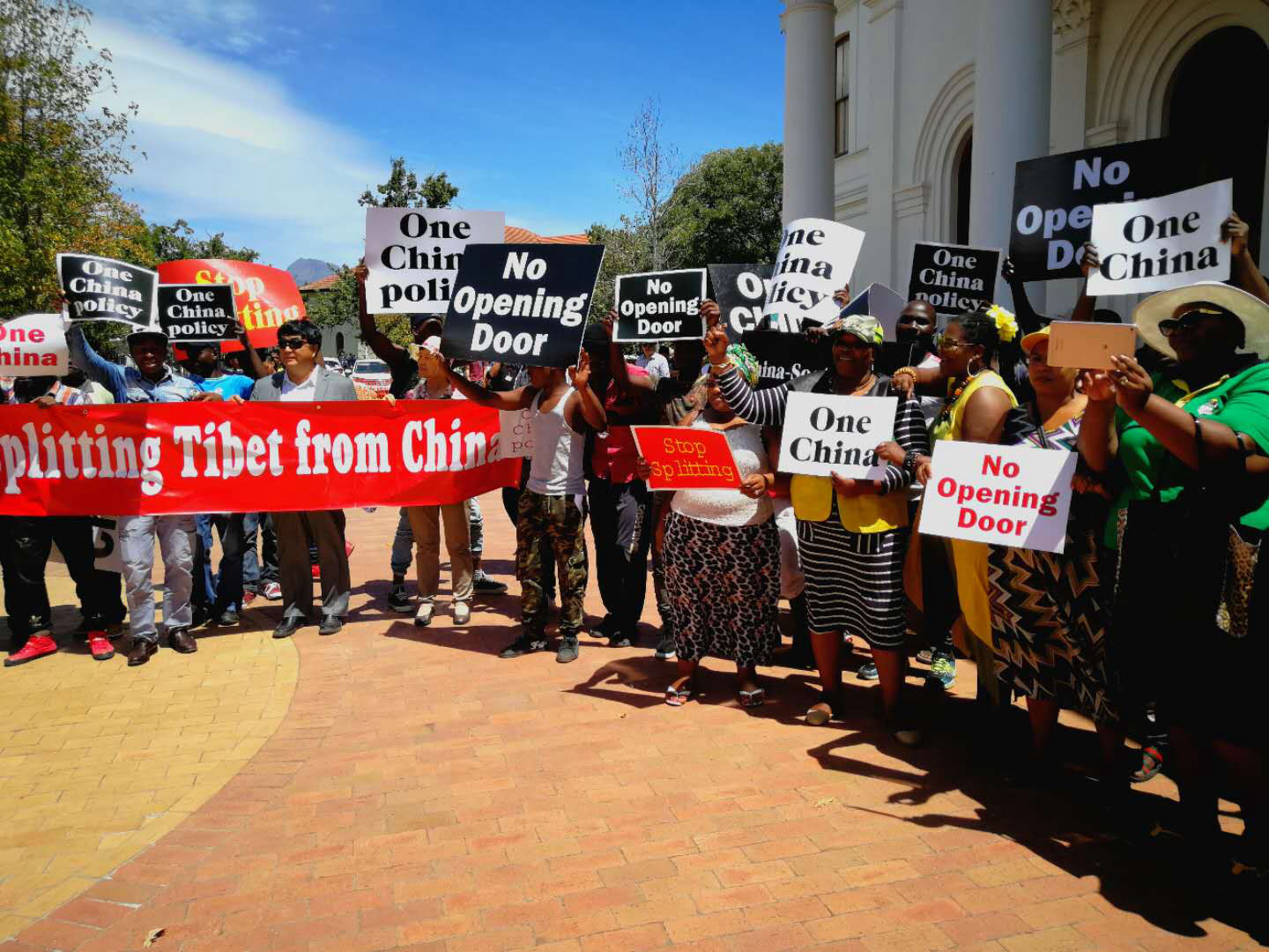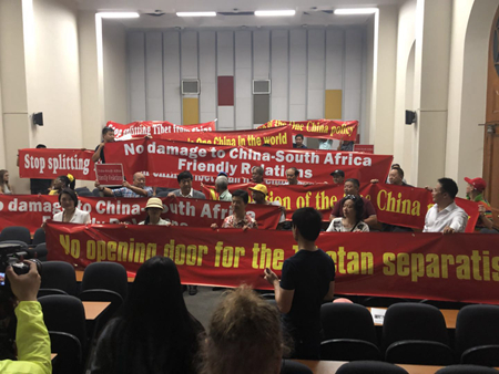 8日,正在南非窜访、自称“西藏中央政府总统”的“西藏流亡政府”头目洛桑孙根企图到南非斯坦陵布什大学法律系进行公开演讲时,数百位南非民众和中国侨民从四面八方聚集到大学,用和平有序示威方式表达了对这一流亡政客破坏中南友好行径的强烈不满和愤怒。