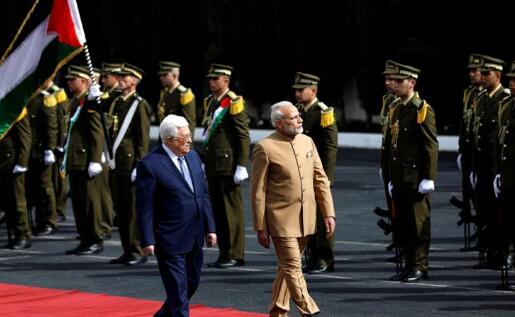 印度总理莫迪10日访问巴勒斯坦,当天与巴勒斯坦领导人阿巴斯举行会谈。/半岛电视台